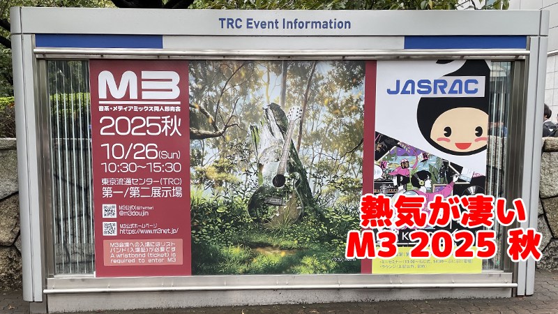 本日は、生憎の曇天でしたが、音系・メディアミックス同人即売会『M3 2025 秋』に一般参加してきました。